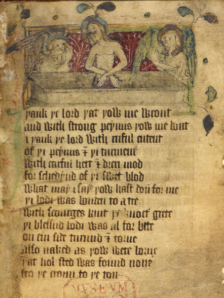 Image: A page from the Katherine Group (which includes the Sawles Warde), kept in the British Library.