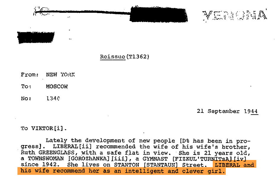 Of the 3000 cables in the collection, nineteen mention Julius, whose codename was Liberal. David Greenglass was Caliber. His wife Ruth was Wasp.