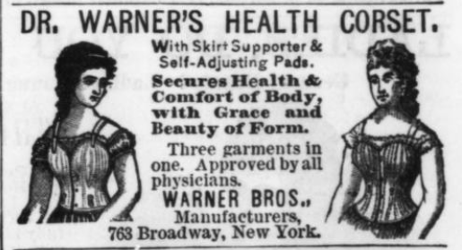 The search for a corset that simultaneously gave you a perfect figure AND felt perfectly free and easy was a gold mine for corset makers. They could claim that only low-quality, badly fitted corsets hurt. Just fork over the premium price for this new design and all will be well (Steele, 42). Reality hit only when the transaction was over.