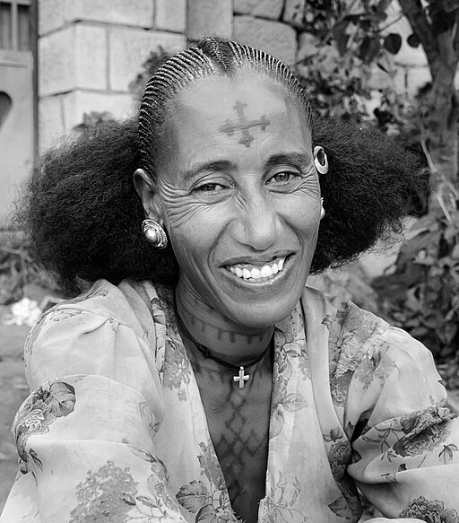 Ethiopian woman with a Coptic cross tattoo (Rod Waddington, CC BY-SA 2.0, via Wikimedia Commons)