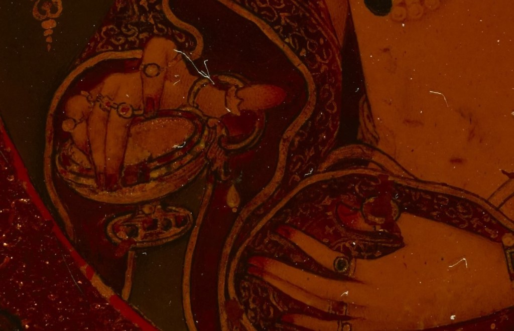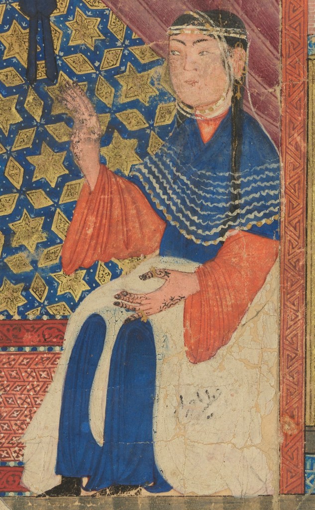 A 1330 depiction of a Persian woman with hennaed hands (National Gallery of Asian Art)
