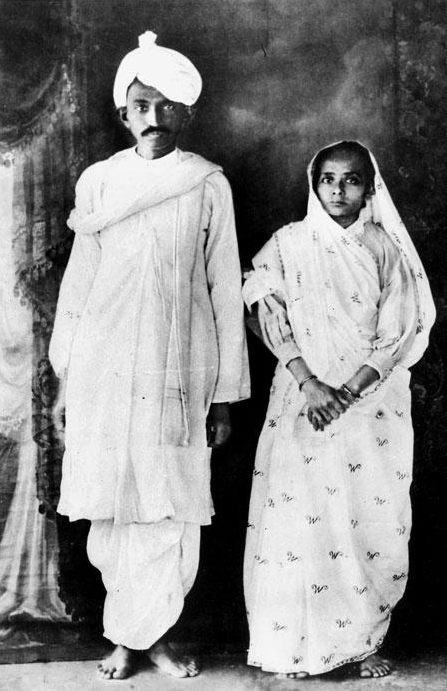 At age seven, Kastur was betrothed to a boy named Mohandas Gandhi. (Mahatma is a title; his name was Mohandas.) At age thirteen, they were married, which by the standards of her culture was very, very late.
