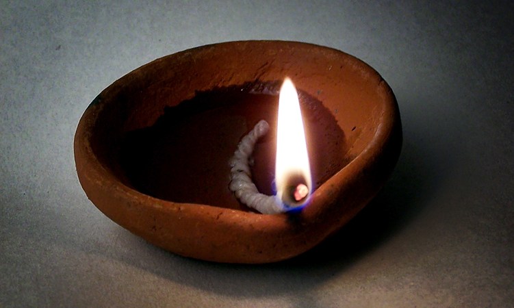 An oil lamp requires three things: a container to hold the oil, the oil itself, and a wick. Ignite one end of the wick, and let there be light.