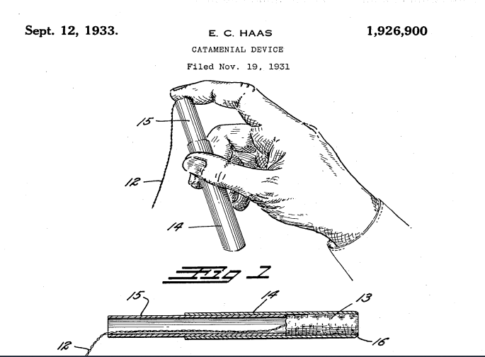 Between 1927 and 1931, several people thought of using this idea for more regular monthly use. The one who succeeded in bringing it to market was Earle Cleveland Haas, who named it Tampax. His version expanded lengthwise but also came with a cardboard dispenser. His wife tested all the iterations, and he eventually sold the rights for a flat $32,000 and no further royalties because he was done, done, done thinking about menstruation. “I didnt want anything to do with it,” he said. “I was so sick of it. After a while you get turned off on those things, boy” (Vostral, 78). Yes, well, him and a whole lot of women who also don’t want to think about it but don’t find it so easy to stop.